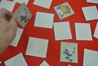 更に5歳くらいからは36枚全てのカードを使用して、3枚の共通する植物カードをめくったら、その3枚のカードを貰えるメモリーゲームをしてみましょう。
