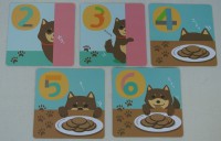 2〜6までの数字が描かれた「ワンちゃんカード」と「にゃんこカード」を順番に出して、その都度、出されたカードの数字を足していきます。