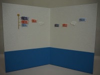 二曲の和紙屏風には可愛らしい鯉のぼりを刺繍しました。青い空と白い雲をイメージしたツートンカラーが五月晴れをイメージさせます。